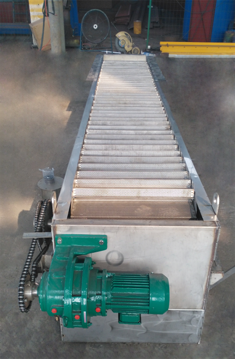 整個格柵部件直接安裝在渠道上,水中的固體物由網(wǎng)板串接成的濾帶捕獲,送至除污機驅(qū)動裝置后部的較高位置后排出。同時一個旋轉(zhuǎn)的刷子還對網(wǎng)板進一步清潔。