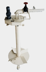 鐘式沉砂池由電動(dòng)機(jī)、減速機(jī)、葉輪主軸、轉(zhuǎn)盤(pán)葉片、空氣提升和空氣沖洗系統(tǒng)、吸砂管及鋼制平臺(tái)、池體(一般為混凝土池,用戶可選配鋼制池體),轉(zhuǎn)盤(pán)葉片的直徑和高度根據(jù)用戶的池體訂制。