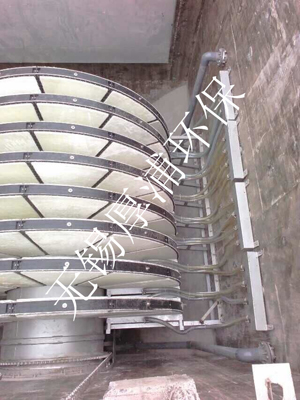 纖維轉(zhuǎn)盤過(guò)濾器是使液體通過(guò)一層濾料的機(jī)械篩濾作用取出懸浮于液體中的微小顆粒物質(zhì)。過(guò)濾器所使用的濾料由金屬、化纖等多種合成材料以不同方式編織而成,過(guò)濾孔徑一般為10~1000um。主要應(yīng)用于市政污水處理廠深度處理,工業(yè)工藝用水的過(guò)濾,以及中水的回用??商娲盀V池,設(shè)置于常規(guī)活性污泥法、SBR系統(tǒng)、CASS系統(tǒng)、延時(shí)曝氣法、氧化溝系統(tǒng)、滴濾池系統(tǒng)、氧化塘系統(tǒng)之后,主要用于去除總懸浮物,結(jié)合投加藥劑可去除部分總磷、濁度、COD等。