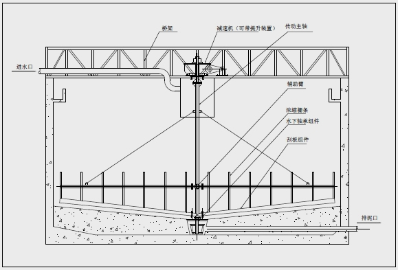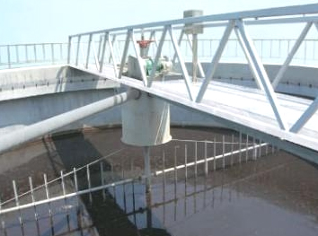 概述: 濃縮是減少污泥體積的一種方法,在污泥處理工程中,一般采用重力濃縮的方法作為污泥脫水操作的預(yù)處理,因此在濃縮池中的污泥濃縮,實際上與沉淀池的沉淀工程很相似,濃縮池池徑小,往往在6-20m范圍內(nèi),濃縮機(jī)大多采用中心傳動形式,他廣泛應(yīng)用市政、輕工、礦山、冶煉、鋼鐵等行業(yè)中活性污泥的濃縮。 設(shè)備機(jī)構(gòu)及工作原理: 含有細(xì)粒物體的料漿或污水,經(jīng)槽架或污泥管給入濃縮池的中心部位,料漿做均勻輻射狀向周邊緩慢流動,在溫游中料漿或污水中的固體顆粒籍自重或絮凝作用而沉降。初由于濃度較低,顆?;咀鲎杂谐两?,沉速較快,繼而沉入濃集帶,沉速較慢。后沉到下部一沉積帶,也是濃度較高的壓縮區(qū),水分從沉降顆粒的間隙中不斷析出。中耙架連續(xù)回轉(zhuǎn)時,耙齒對該部沉積物沿池底的錐形坡面逐級推向池底的中心處,后由該處的排料口排出。中耙齒推進(jìn)沉積物時,也是刮板對沉積物的一個壓縮過程,這也大大的促使析水作用的加強,因而從排料口排出的沉積物時經(jīng)過濃縮的料漿或污泥。池上部是澄清 帶,澄清液從池邊溢流堰排出,從而構(gòu)成濃縮機(jī)工作的全過程。